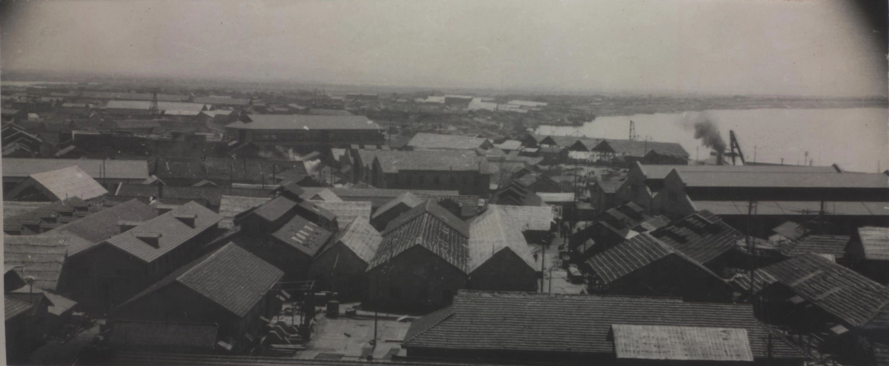 1934年武漢,解放前,武昌造船坐落于晚清時期湖廣總督張之洞開辦的紡紗局遺留的舊址武昌老城區文昌門外長江邊。廠房是在“紡紗局”的舊址上興建的,多為老舊房屋改造而成,年久失修,破敗不堪。