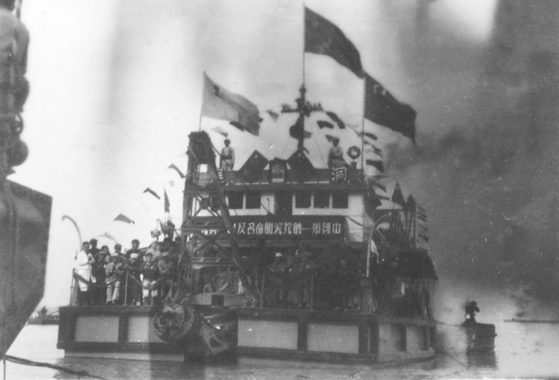 1949年7月上海,1949年7月23日,江南造船所舉行“職工慶功大會”。上海市市長兼軍管會主任陳毅、副市長曾山、華東海軍司令員張愛萍、上海市總工會主席劉長勝等出席了大會。會上總結修復廠房設備的經驗,宣布恢復生產表彰有功人員。全所有 134人被評為一、二、三等功臣受到表彰。