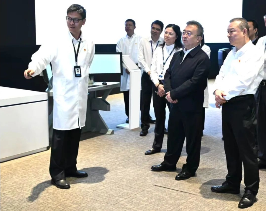 王國強深入科研生產一線,調研了相關實驗室和產品,與首席專家、領軍人才、一線科研人員交流,聽取了二級管理單位負責人關于企業發展、科技創新、人才培養、黨的建設、文化建設等情況匯報。