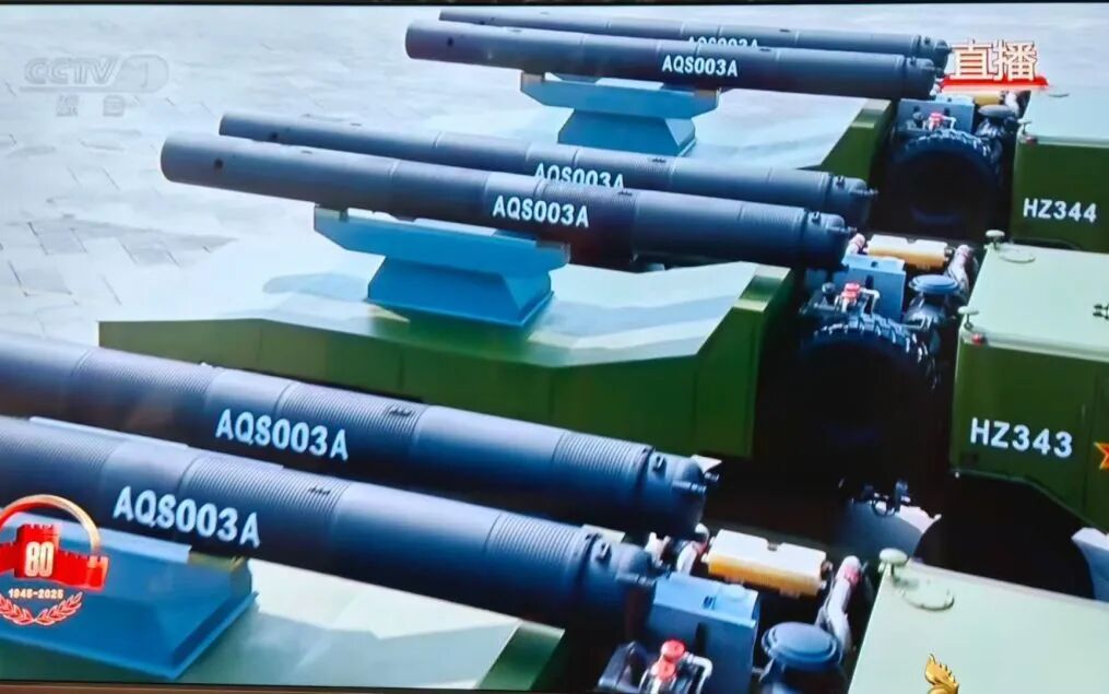 潛匿大洋,出奇制勝。水下兵器方隊受閱的4型裝備,具備自主探測、立體毀傷的作戰能力。其中,輕型魚雷是新一代輕型反潛魚雷,助飛魚雷是火箭助飛反潛魚雷,重型魚雷是潛射制導魚雷,這3型魚雷均為我國自主研發,可打擊水面艦艇、摧毀水下目標。新型特種水雷能夠自主識別、自主攻擊,是扼守要沖、奇襲制敵的“鎮海神兵”。