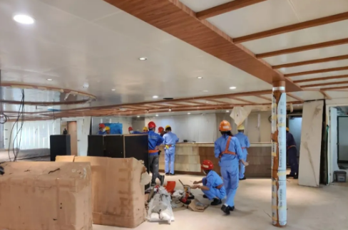 這是廣船國際阿爾及利亞豪華客滾輪內裝收尾現場。
