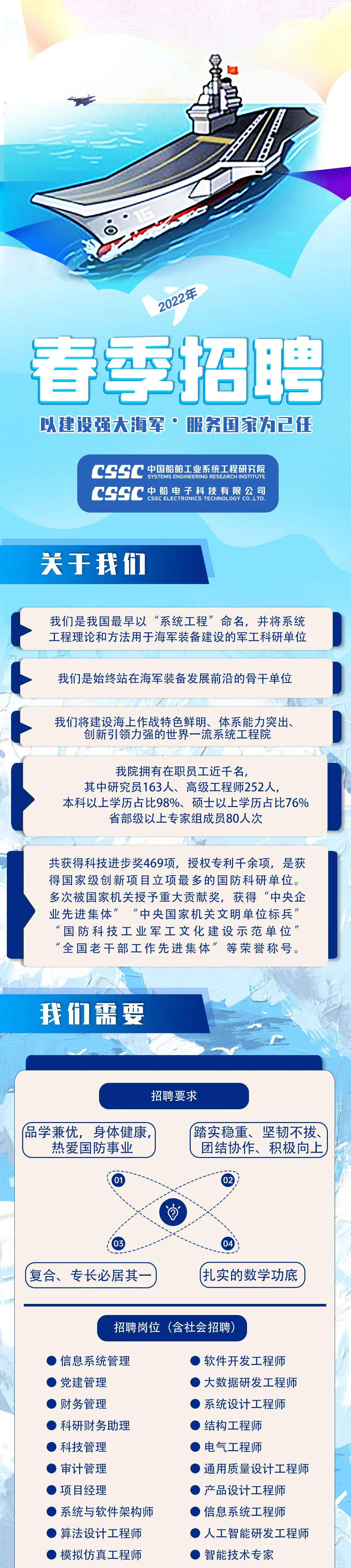 戰(zhàn)艦閃耀,飛鯊翱翔。 大國重器,強國擔(dān)當(dāng)! 這里招賢納士,虛位以待, 讓我們一同感受星辰大海, 讓我們并肩共赴深藍夢想, 這里必將因你而更加精彩!