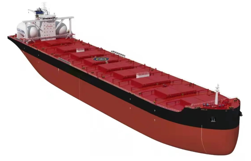 為滿足船東在大型散貨船上應用氨燃料的迫切需求,青島北海造船的技術設計團隊積極作為,在結構優化、總體研究、燃料艙選型與布置、氨燃料系統研究、危險源識別分析等方面做了大量工作,高效完成了船型設計方案,并滿足了美國船級社(ABS)“氨燃料預留2級(結構)”要求,可在未來轉換為氨燃料運營。