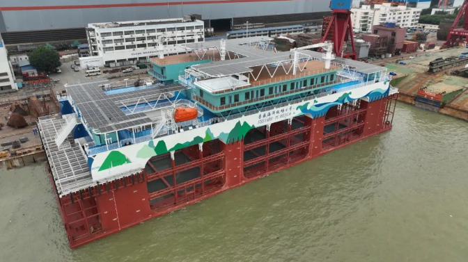 中國船舶集團旗下廣船國際建造的半潛式深遠海智能養(yǎng)殖旅游平臺“普盛海洋牧場6號”命名交付。